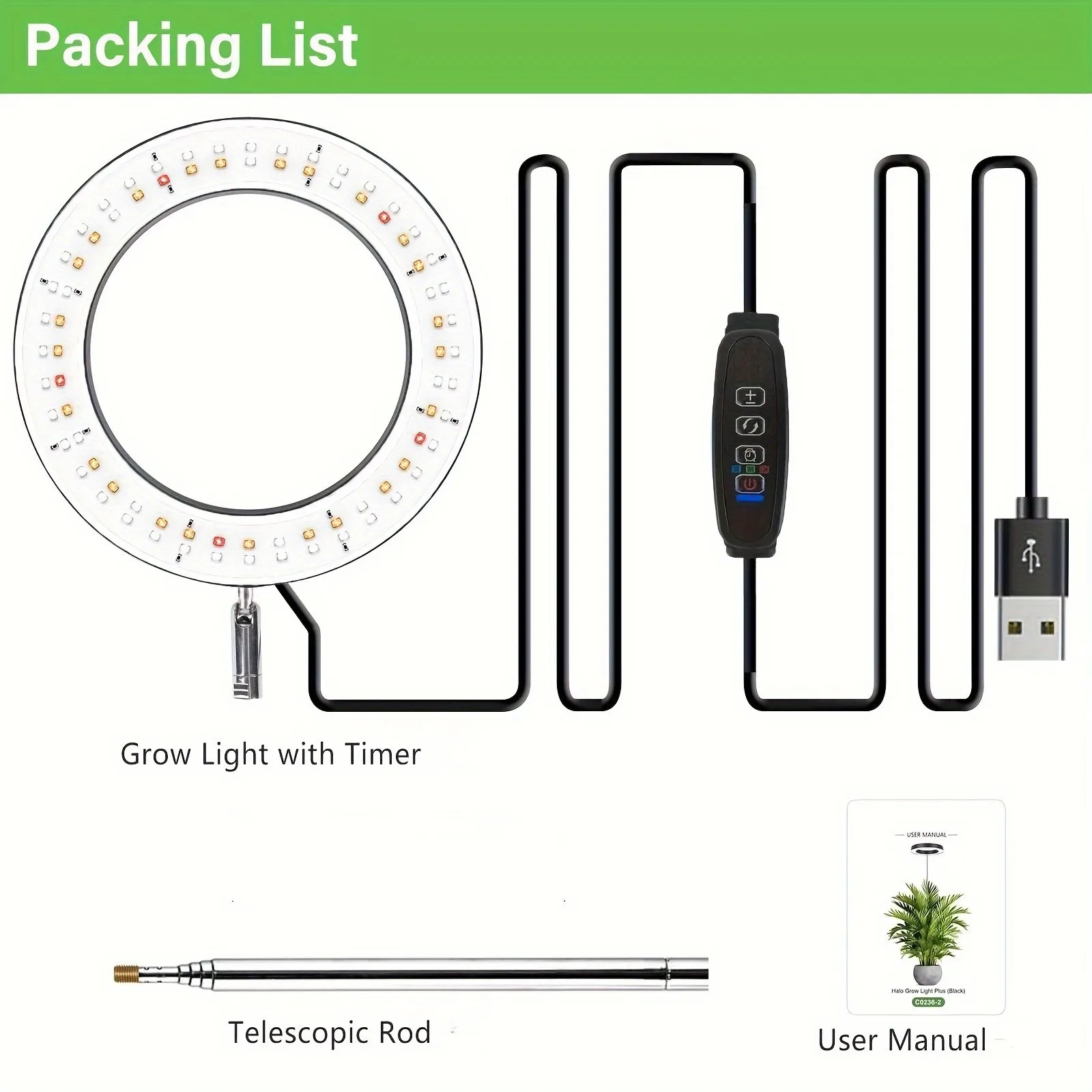 1.16cm/6.3inch Ring grow light designed for large plant, Full spectrum 380nm-800nm, Number of lamp beads: 70 (white light: 35, yellow light: 23, red light: 8, blue light: 4), Stronger lighting effects for more effective plant growth.